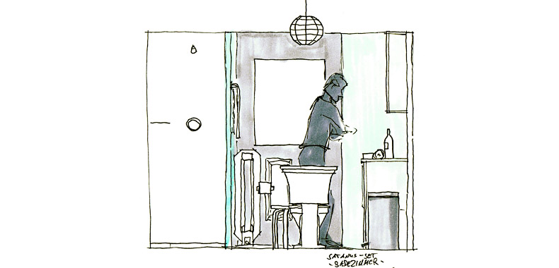 Sketch for a bathroom movie set - elevation