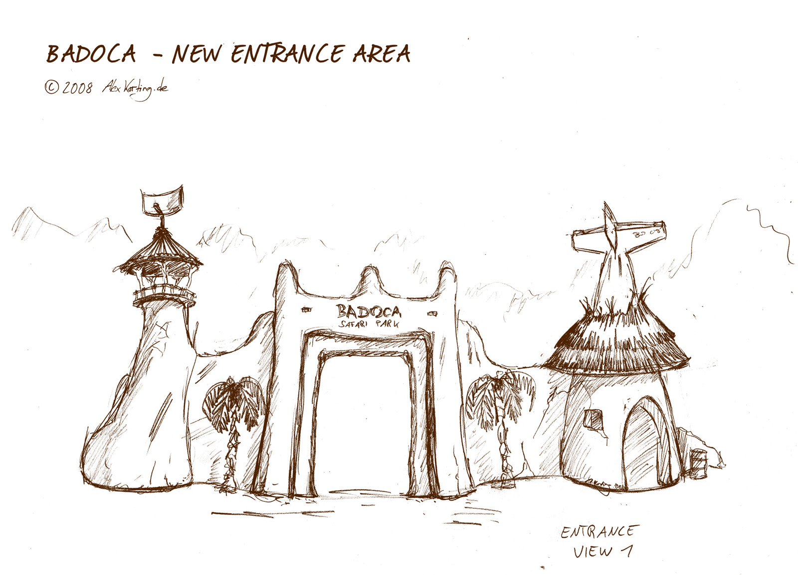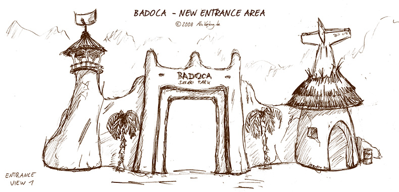 Concept scribble of the new entrance gate of the Badoca safari park - Front view