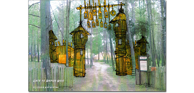 Sketch for a cheap-but-impressive gate to a new themed area, version 2