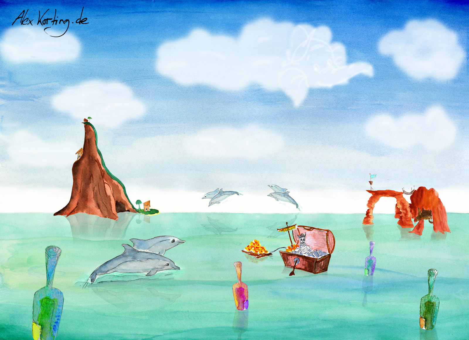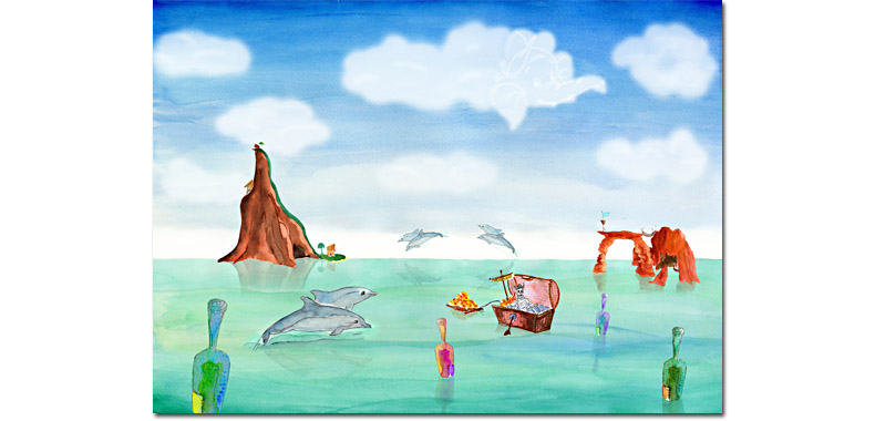 Ocean backdrop paintings for pirates themed soft-shooter and other activities