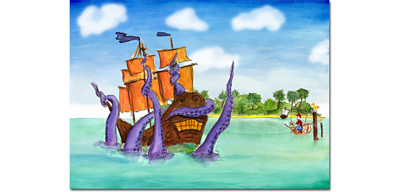 Ocean backdrop paintings for pirates themed soft-shooter and other activities