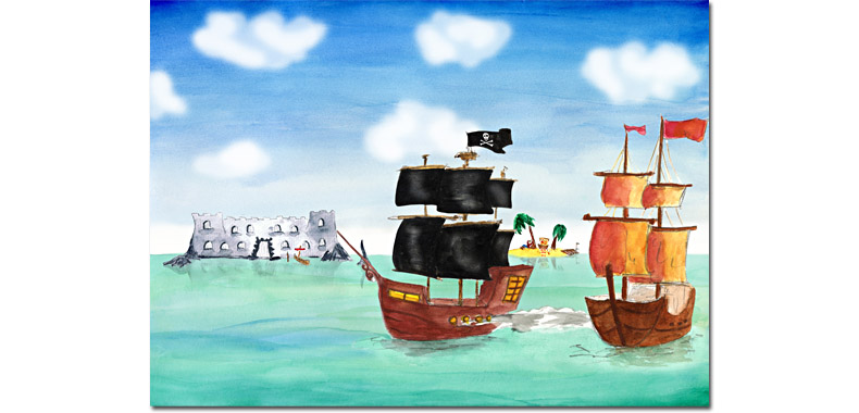Ocean backdrop paintings for pirates themed soft-shooter and other activities