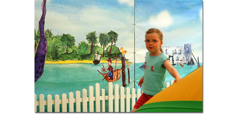 Ocean backdrop paintings for pirates themed soft-shooter and other activities