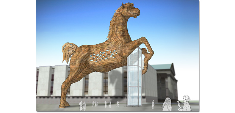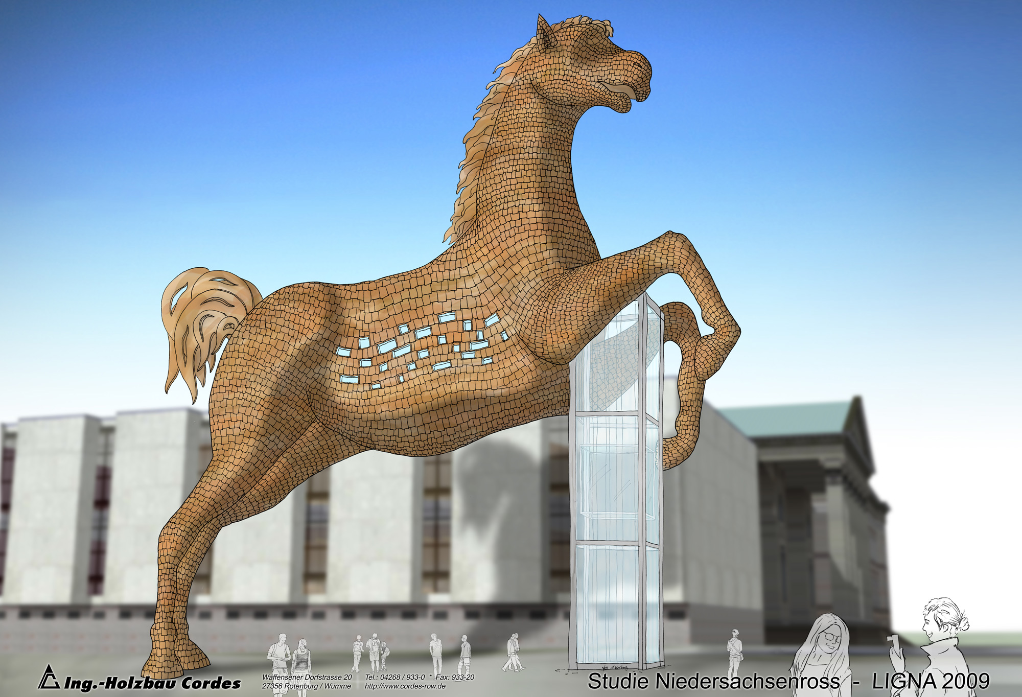 The horse standing in a possible location in front of Lower Saxony's parliament