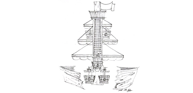 First idea and sketch from 2005 of a ship-themed Flying Wheel.