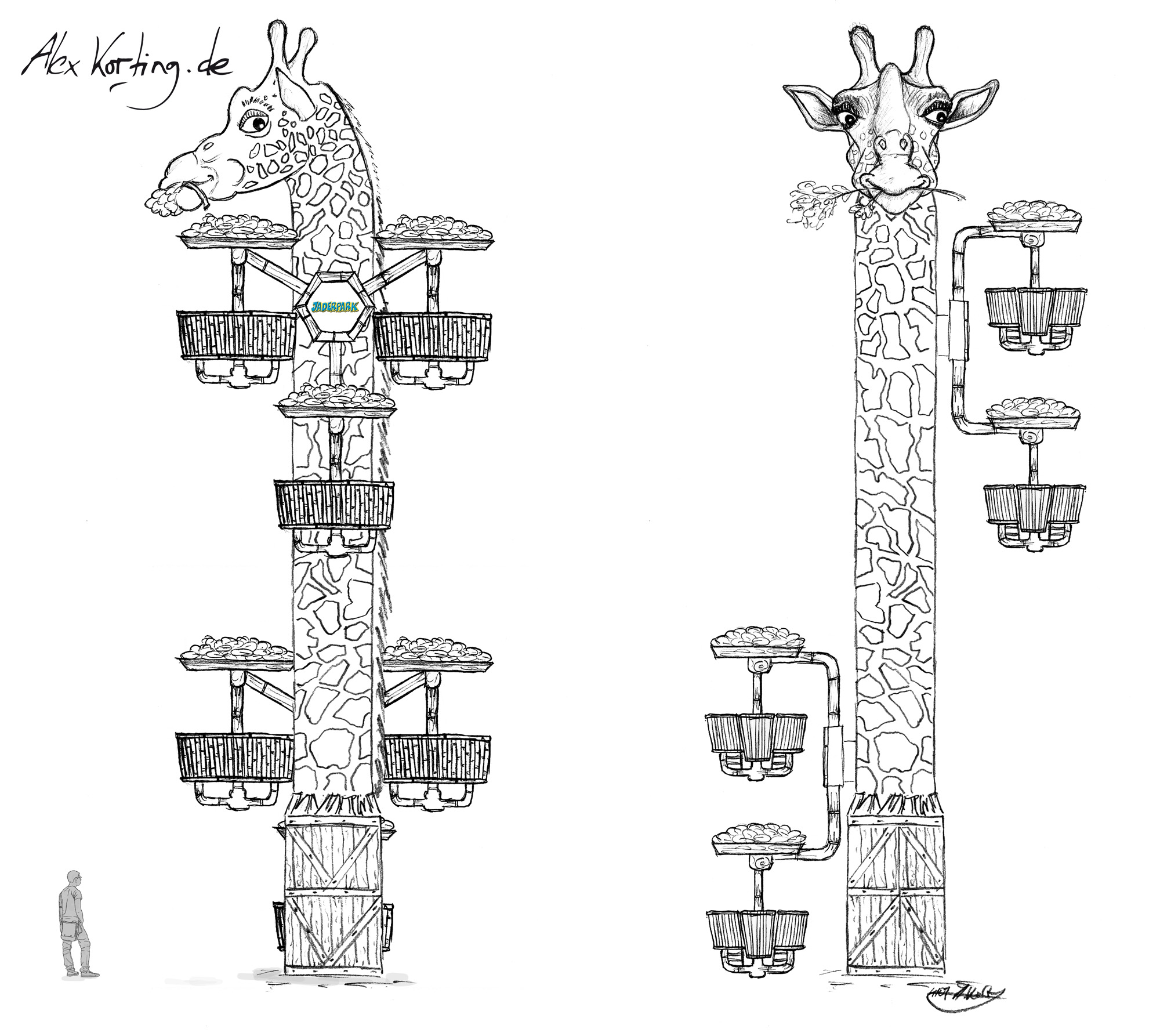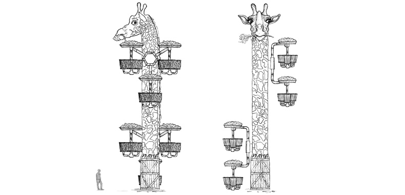 ... in shape of a giraffe that sticks its head and neck out of a shipping box.