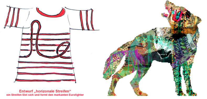 Left side: Striped Eurofrighter coaster design, right side: howling wolf design