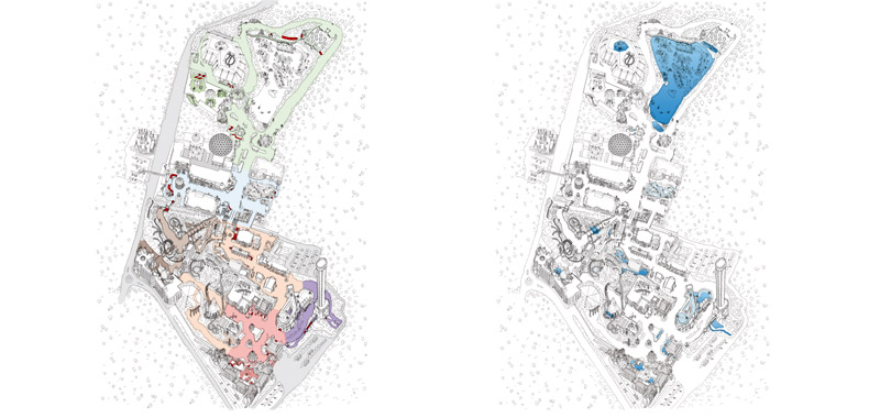 In a first step of the coloration in Photoshop all the pathways and water areas created..