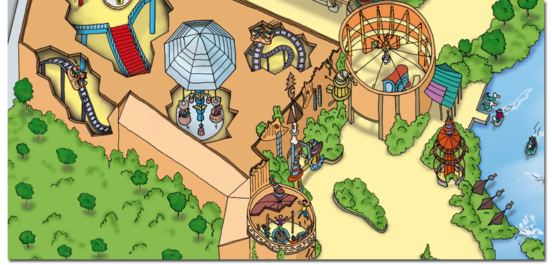 Wuze Town detail. Cutouts reveal important indoor attractions.