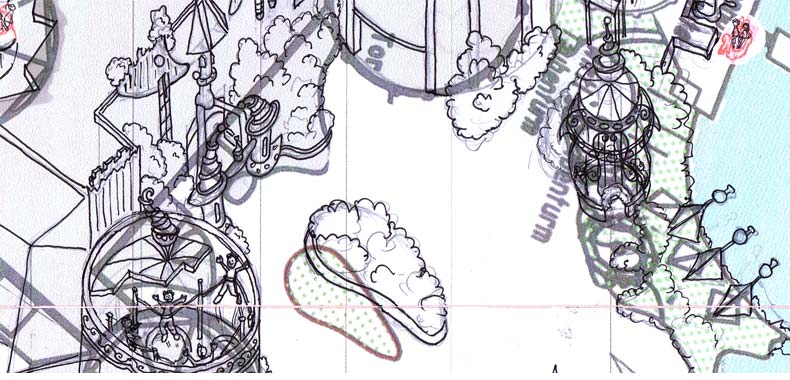 Entrance of Wuze Town (left) and Wirtl's Taubenturm (right)