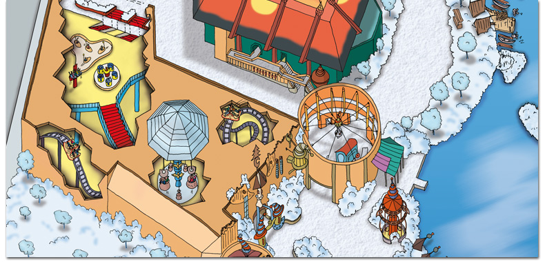 Wuze Town has a nice contrast in the snow and shows the kids area on the first floor.