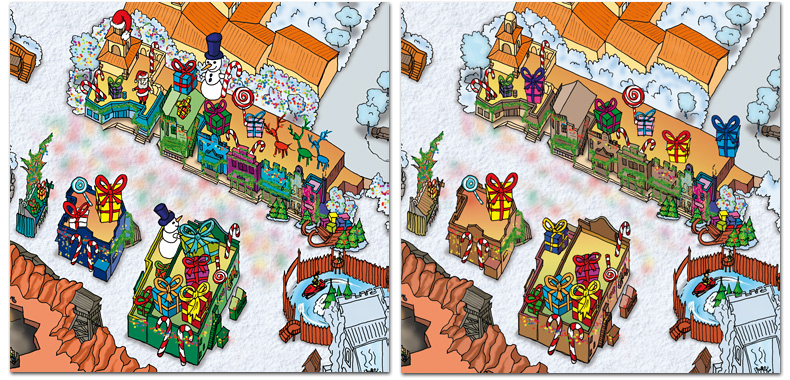 First version of Silverbell City (left) and reduzed decorations (right)
