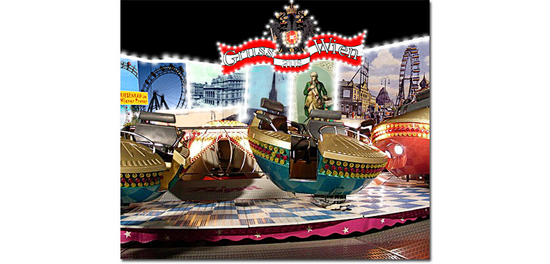 Historical postcards and a "Greetings from Vienna" sign are decorating the background in this montage | Photo: Wolfgang Payer