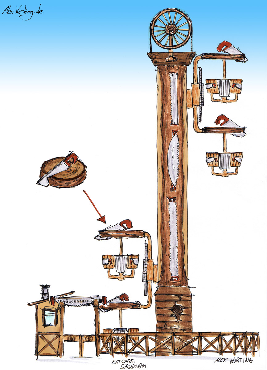Sawmill theming for a Flying Wheels attraction