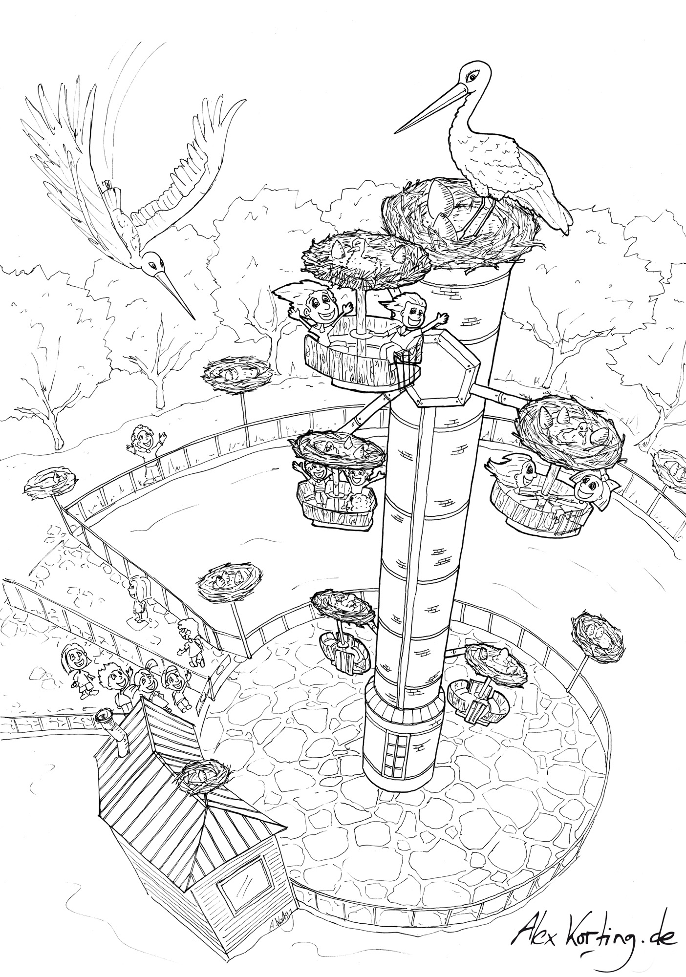 Advertisement illustration for Tierpark Thüle's new Flying Wheels ride. Click