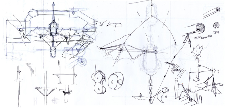 The story soon based on dragons and castles along the Rhine river... (above: construction sketches)