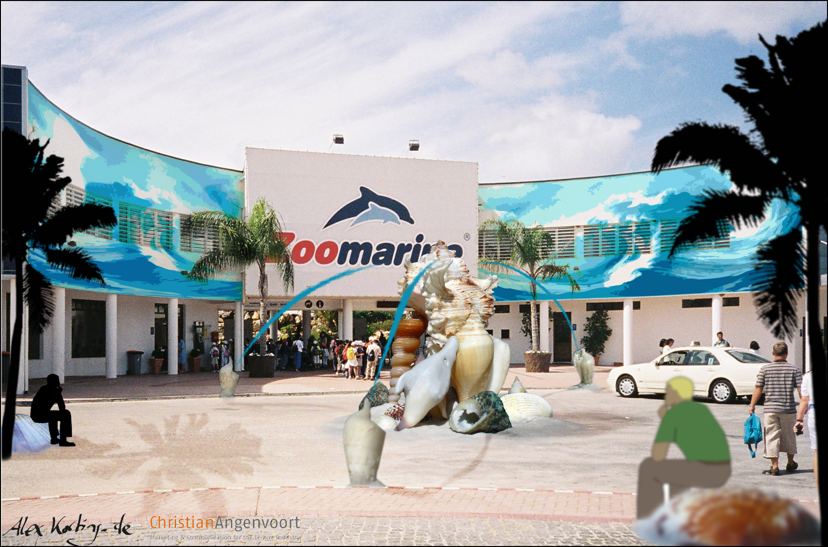 Illustration of the redesigned entrance with the play sculpture and a seaside mural